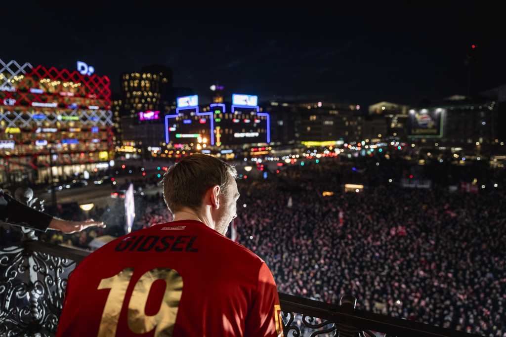 Danske håndboldherrer fejres på Rådhuspladsen efter historisk EM-guld